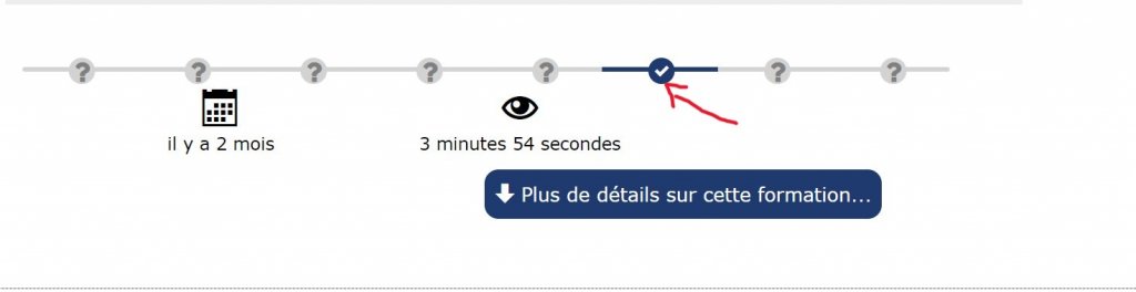 3. Si vous cliquez sur "plus de détails sur cette formation", vous aurez le détail des cours. Ceux que vous n'avez pas fait ont un point d'interrogation. Cliquez simplement sur le cours que vous voulez faire.