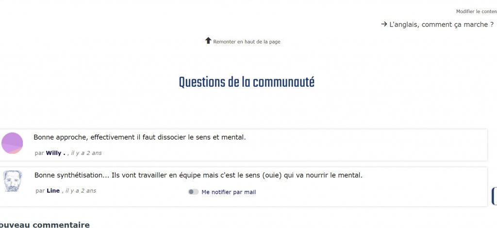 5. En bas de page des cours, vous pouvez cliquer sur le nom du cours suivant pour y aller et laisser un commentaire, auquel je me ferai un plaisir de répondre.